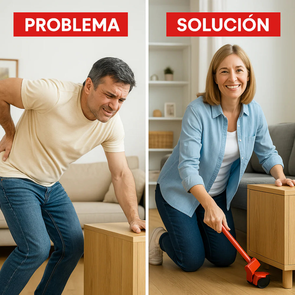 El kit soporta hasta 300 kg, por lo que puedes mover sofás, camas, refrigeradores, armarios y otros muebles pesados sin riesgo.