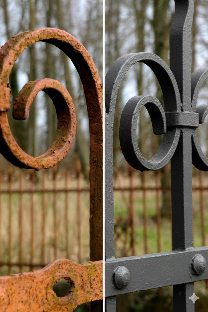 Solo es necesario retirar las escamas de óxido sueltas o pintura descascarada con un cepillo de alambre o lija gruesa para que el producto penetre bien.