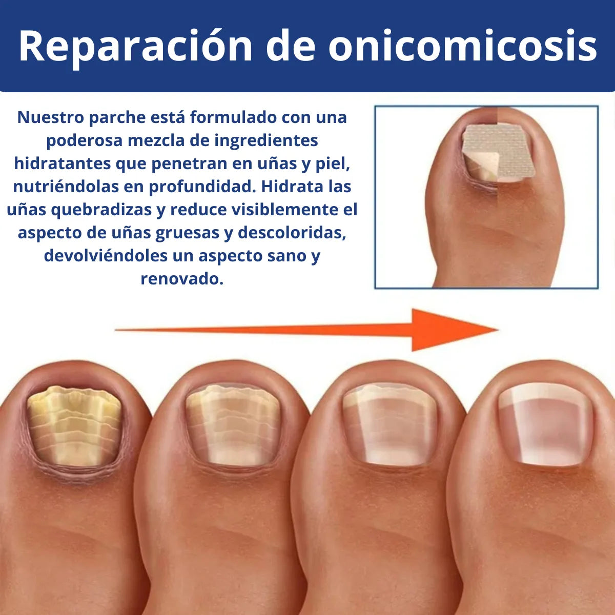 Solo limpia y seca bien la zona afectada, coloca el parche sobre la uña y déjalo actuar entre 6 y 8 horas (idealmente durante la noche). Luego, retíralo y reemplázalo por uno nuevo al día siguiente.
